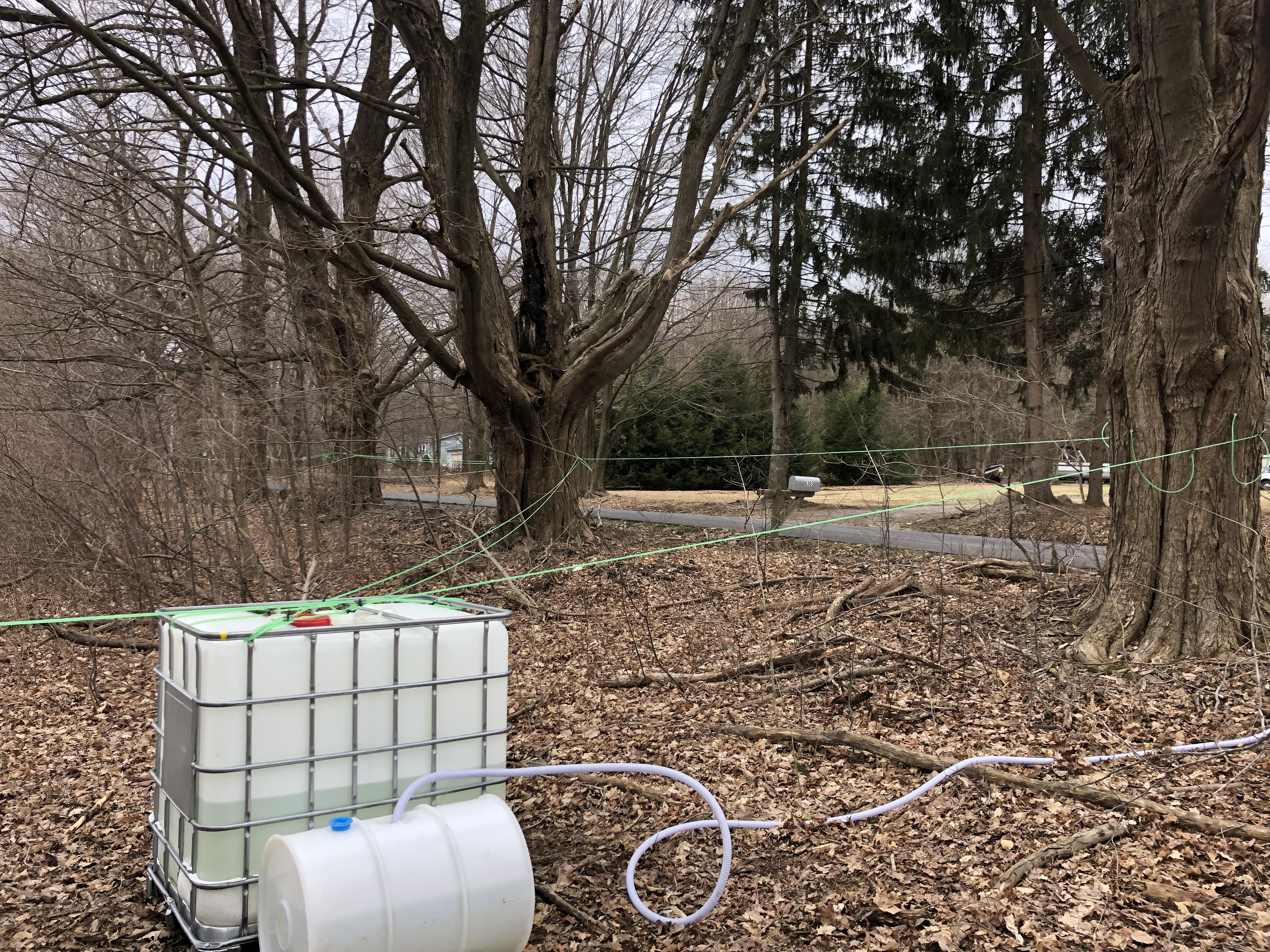 Another good run yesterday and overnight, sap should keep flowing today too. We ran the RO while we slept so that we could have an early morning boil instead of our typical afternoon/evening ones that go way too late. In other news our new experimental road maples next door are running great. We use smaller diameter tubing that creates a natural vacuum, the weight of the sap in the downhill tubing pulls on the trees much like a siphon. It’s nothing like our other woods but it’s easy/cheap to setup and requires little maintenance during the season, plus the sap was 2.5% sugar due to all of the sunlight the trees receive in the summer! Thanks Bob/Cody/Craig!