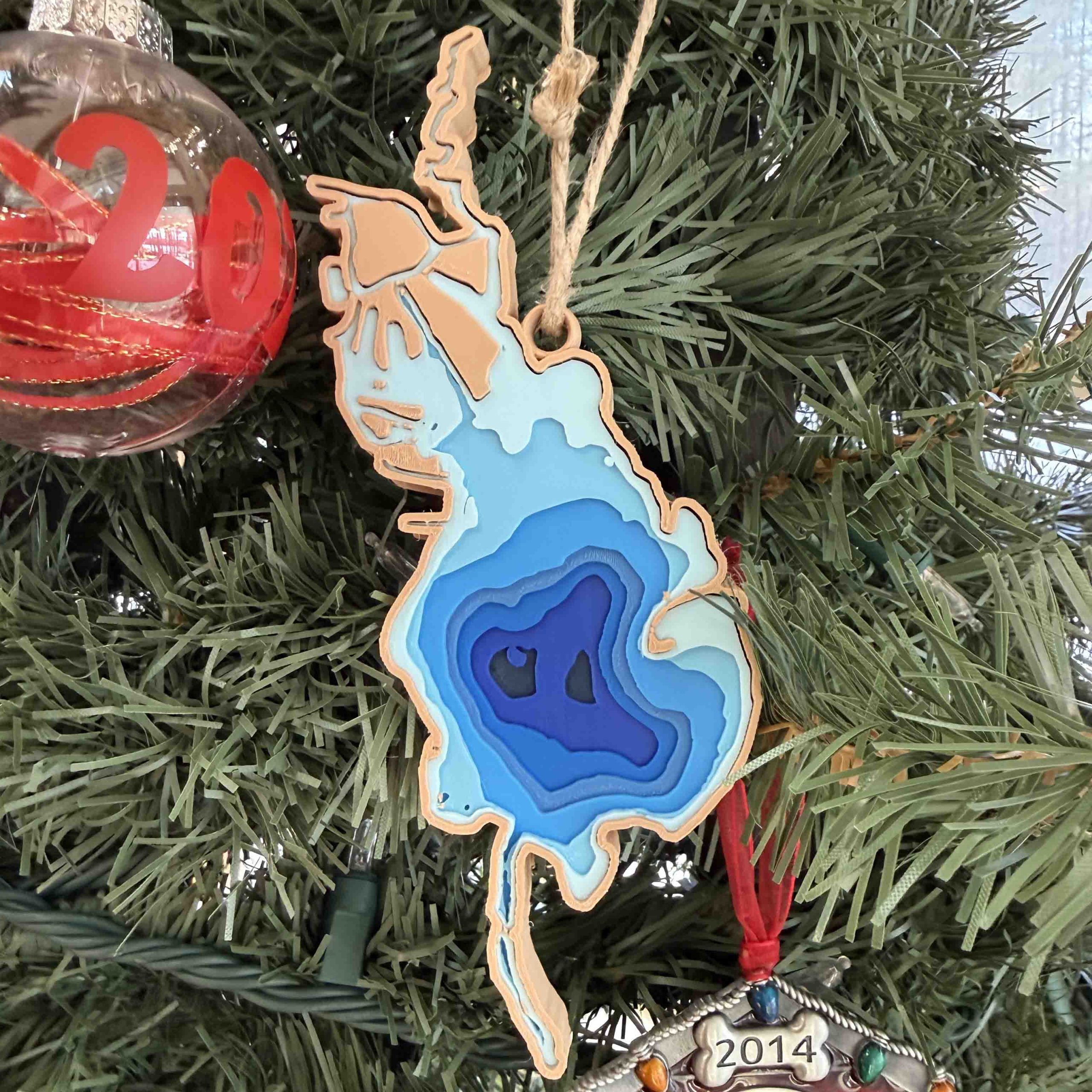 This vibrant 3D-printed depth map captures the unique shape and bathymetry of Edinboro Lake, a scenic body of water nestled in northwestern Pennsylvania. The layered design uses a rich gradient of blues to illustrate the lake’s varying depths, with the deepest areas in dark navy and shallower zones in lighter tones. A warm beige outline defines the shoreline, while tan accents detail the surrounding topography, including the lake’s northern inlet and dock areas. Both functional and artistic, this piece offers a stunning, tangible representation of Edinboro Lake’s underwater contours, perfect for lake lovers and local pride.