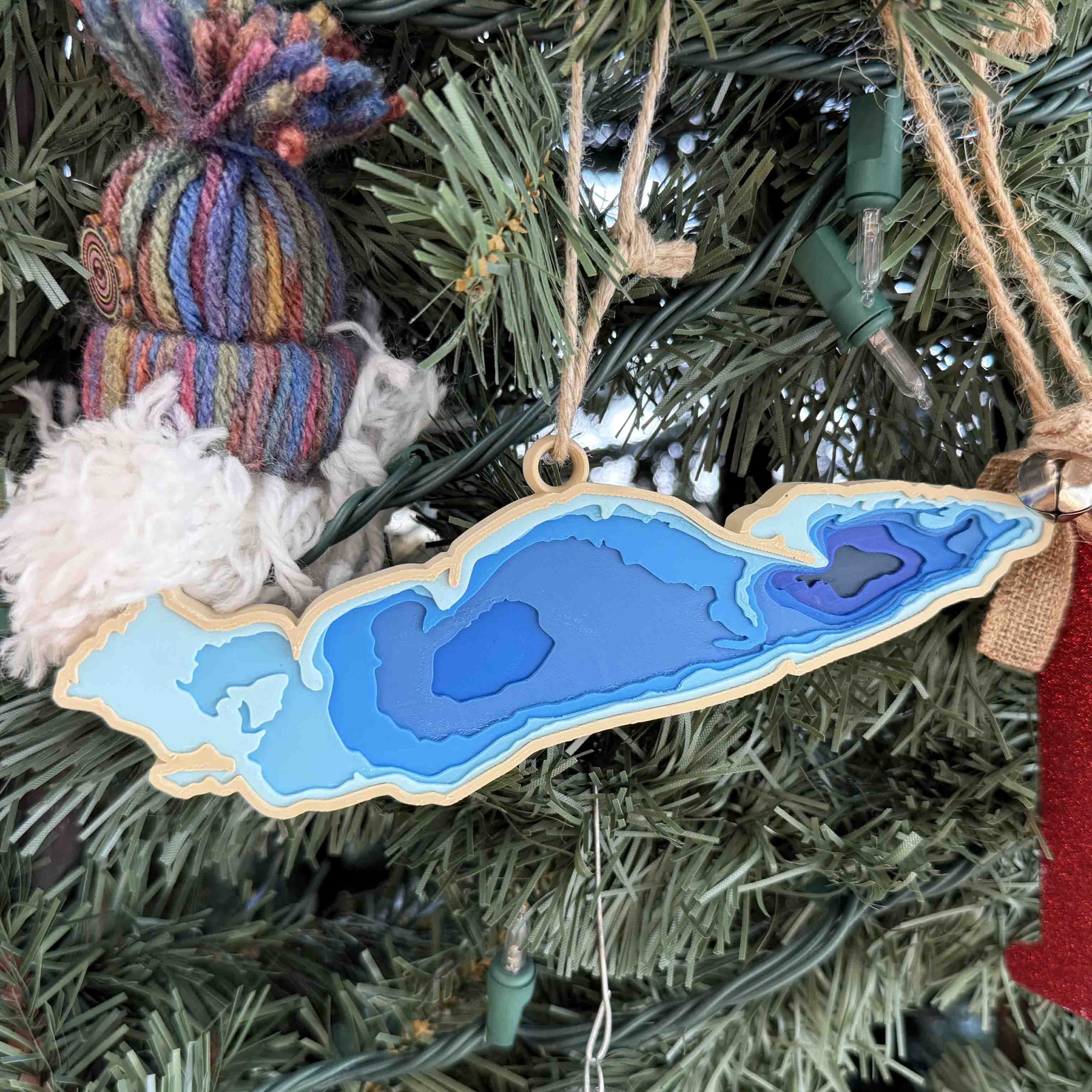 This bold and expansive 3D-printed depth map of Lake Erie captures the dramatic underwater topography of one of North America’s Great Lakes. The lake’s iconic horizontal silhouette is outlined in warm tan, while a stunning gradient of blues—from bright shallows to deep navy basins—illustrates the varying depths of its vast waters. Notable features such as the central basin, eastern deep trench, and western shallows are distinctly layered, offering a tactile and visual exploration of the lake’s geography. Whether displayed as décor or used for educational purposes, this piece showcases the impressive scale and beauty of Lake Erie with both accuracy and artistry.
