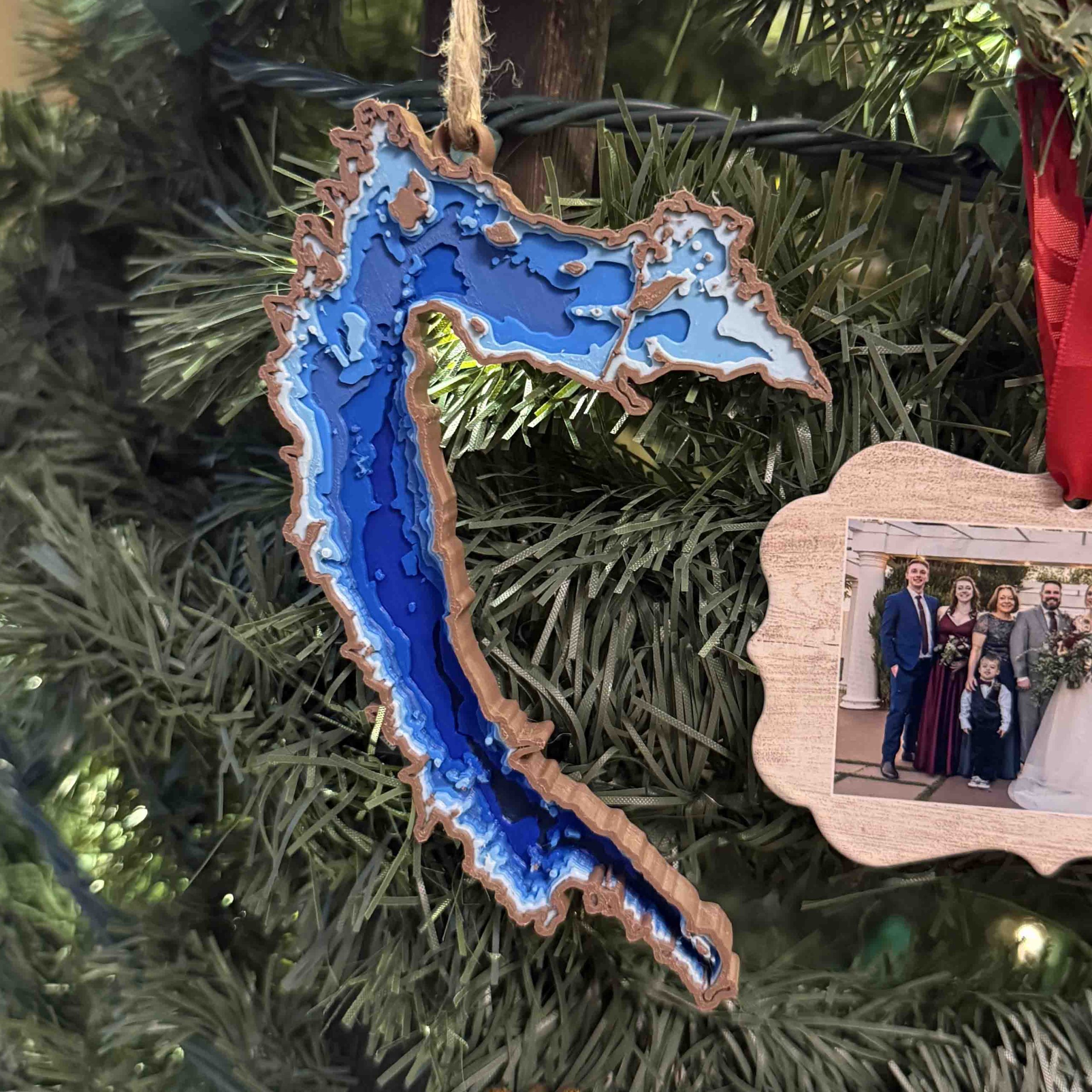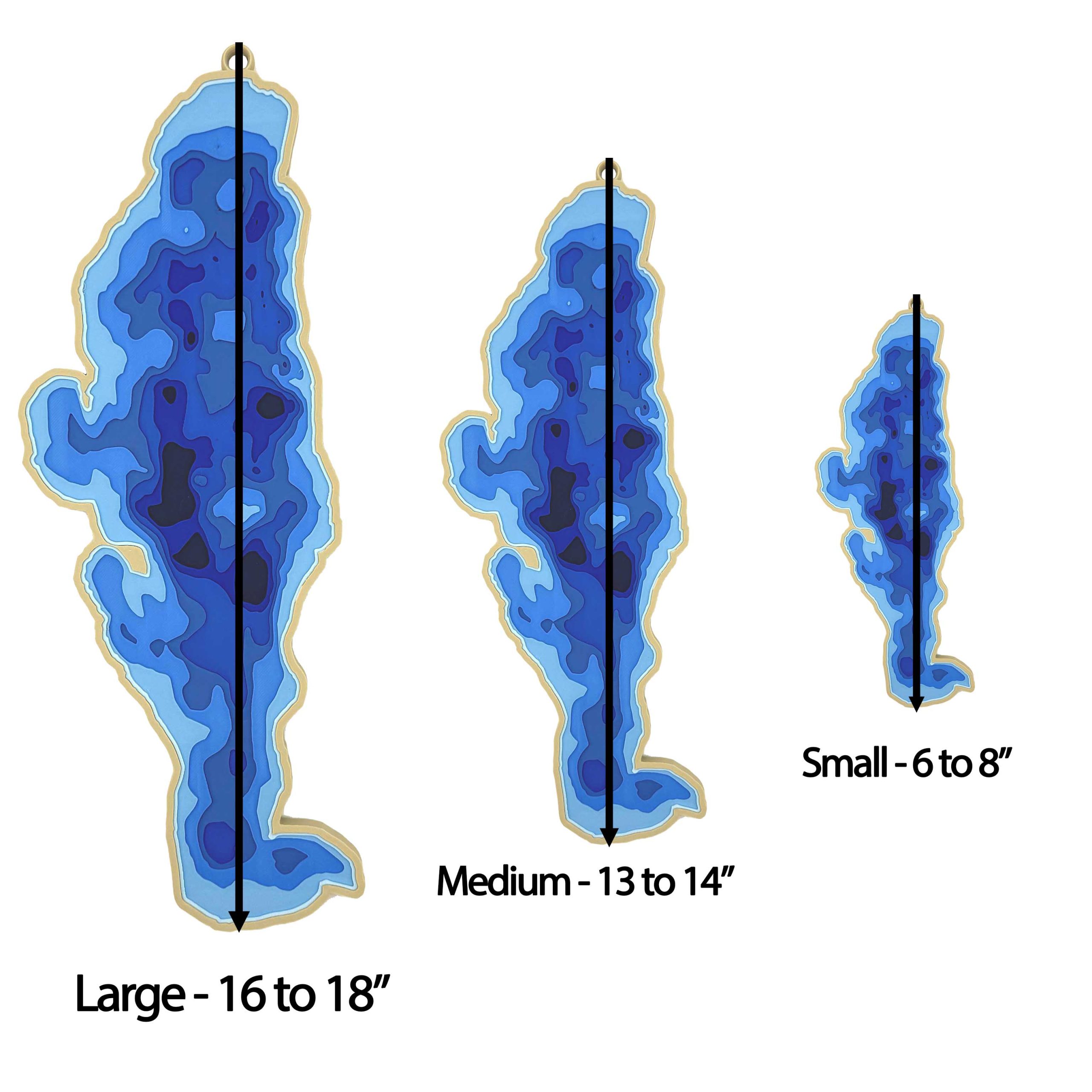 This striking 3D-printed depth map brings Pymatuning Lake to life with a vivid display of layered topography and aquatic depth. Spanning the Pennsylvania-Ohio border, Pymatuning’s iconic shape is outlined in soft tan, while its depths are rendered in a gradient of deep to light blues—highlighting the vast shallows and deeper channels of this beloved reservoir. Intricate cutouts represent islands, inlets, and shore features with remarkable accuracy, offering both a visual and tactile experience. Ideal for lake enthusiasts, anglers, or local residents, this piece beautifully blends artistic craftsmanship with geographic precision.