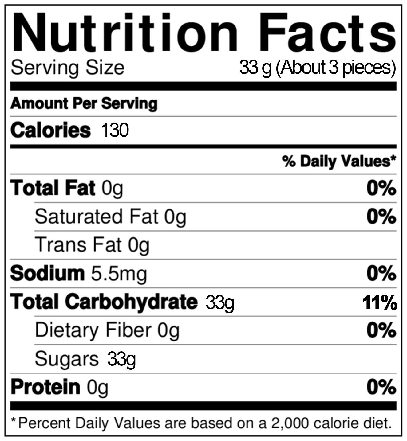 Maple candy is best if consumed within 10 weeks of production (expiration date printed on bag) because it tends to dry out quickly. Keep this in mind before buying maple candy as a gift. Do not remove from Mylar bag until candies are ready to be consumed. All boxes are weighted to have at least the advertised weight. Most of our molds are 1/3rd oz but they range from 1/4 to 1 oz, so each box varies with how many pieces are in it
